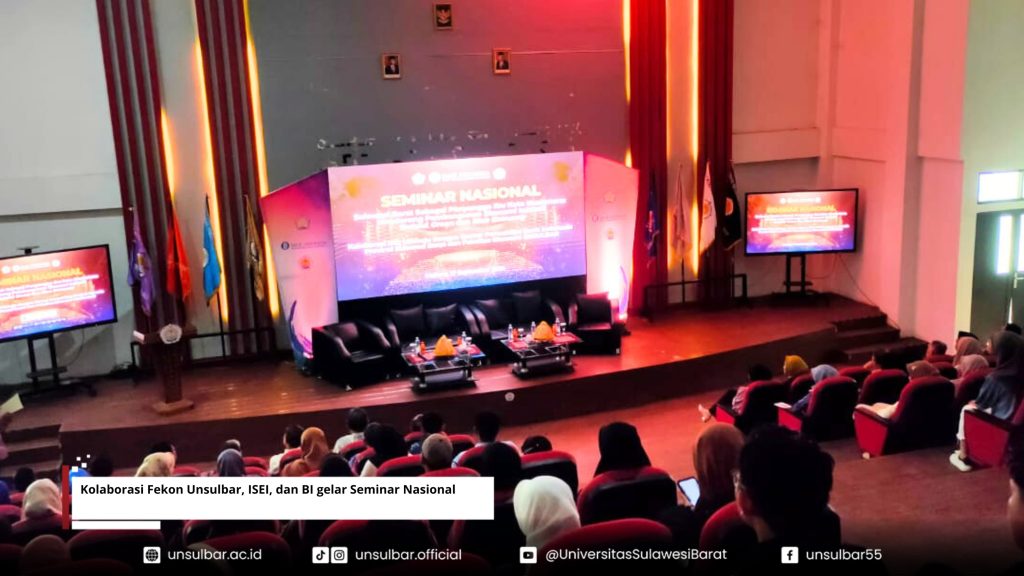 Universitas Sulawesi Barat – Seminar Nasional yang diselenggarakan Fakultas Ekonomi (Fekon) Unsulbar berkolaborasi dengan Ikatan Sarjana Ekonomi Indonesia (ISEI) cabang Mamuju bersama Kantor perwakilan Bank Indonesia (BI) sukses berlangsung di Gedung Theater Unsulbar, Kamis 17 September 2024 pagi
