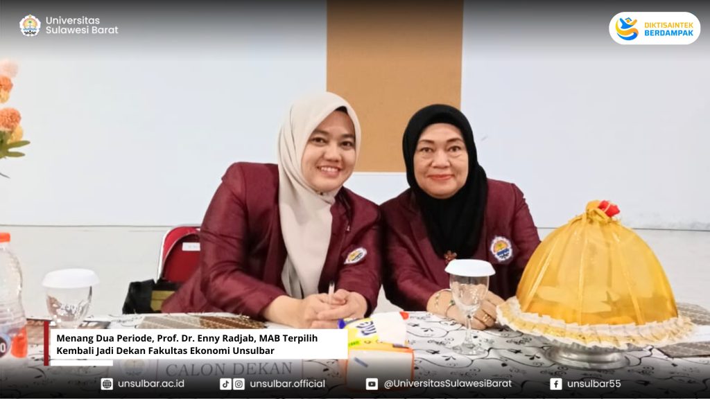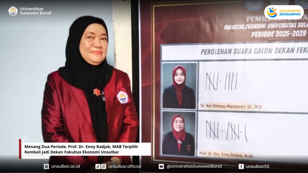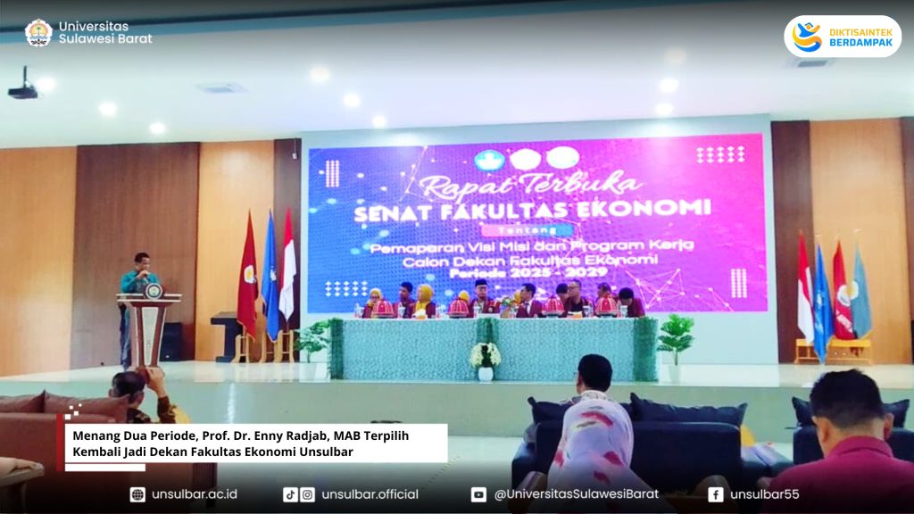 Universitas Sulawesi Barat, Majene – Prof. Dr. Enny Radjab MAB kembali terpilih menjadi Dekan Fakultas Ekonomi Unsulbar untuk periode 2025-2029 dalam kegiatan Rapat terbuka Senat Fakultas Ekonomi, Pemilihan Dekan Fakultas Ekonomi Unsulbar yang digelar di Auditorium mini, Selasa 4 November 2025