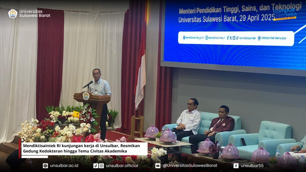 Universitas Sulawesi Barat – Unsulbar terima kunjungan Menteri Pendidikan Tinggi, Sains dan Teknologi Republik Indonesia (Mendiktisaintek RI) Prof. Brian Yuliarto, S.T., M.Eng., Ph.D. bersama rombongan hari ini, Selasa 29 April 2024