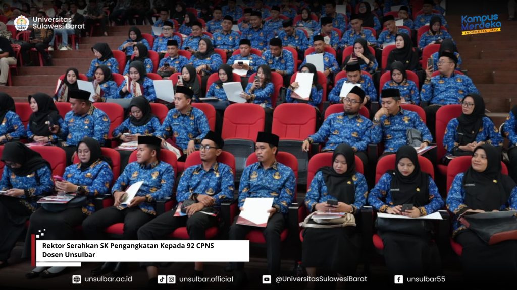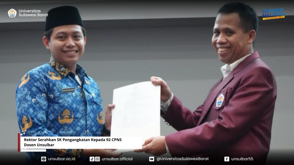 Universitas Sulawesi Barat – Sebanyak 92 Calon Pegawai Negeri Sipil (CPNS) formasi anggaran 2024 terima Surat Keputusan (SK) Menteri Pendidikan Tinggi Sains dan Teknologi, Rabu 11 Juni 2025