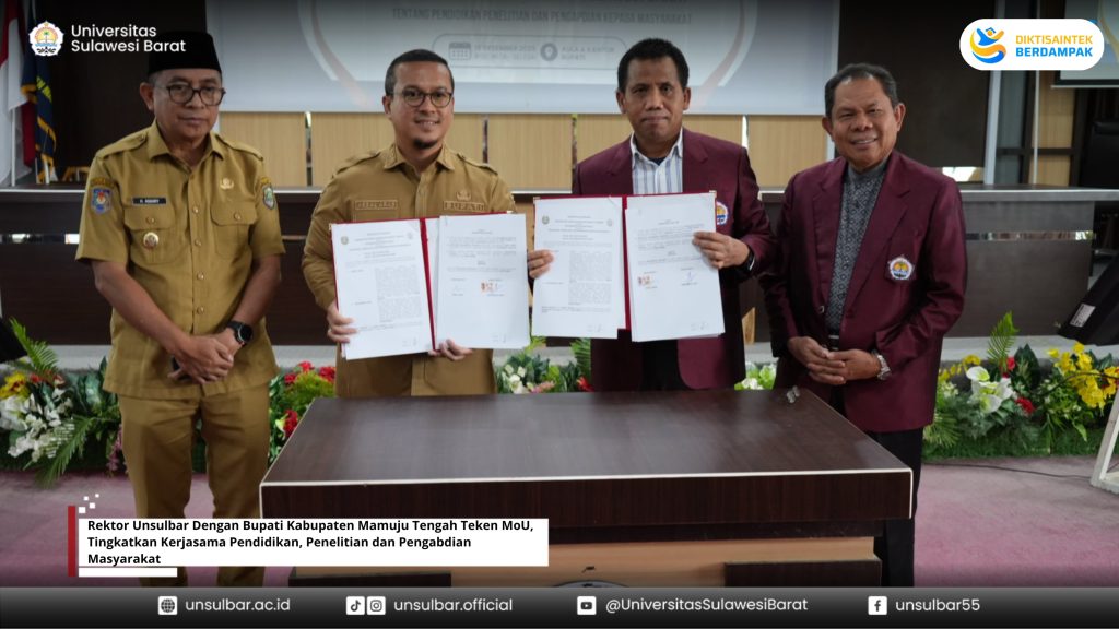 Rektor Unsulbar Dengan Bupati Kabupaten Mamuju Tengah Teken MoU, Tingkatkan Kerjasama Pendidikan, Penelitian dan Pengabdian Masyarakat