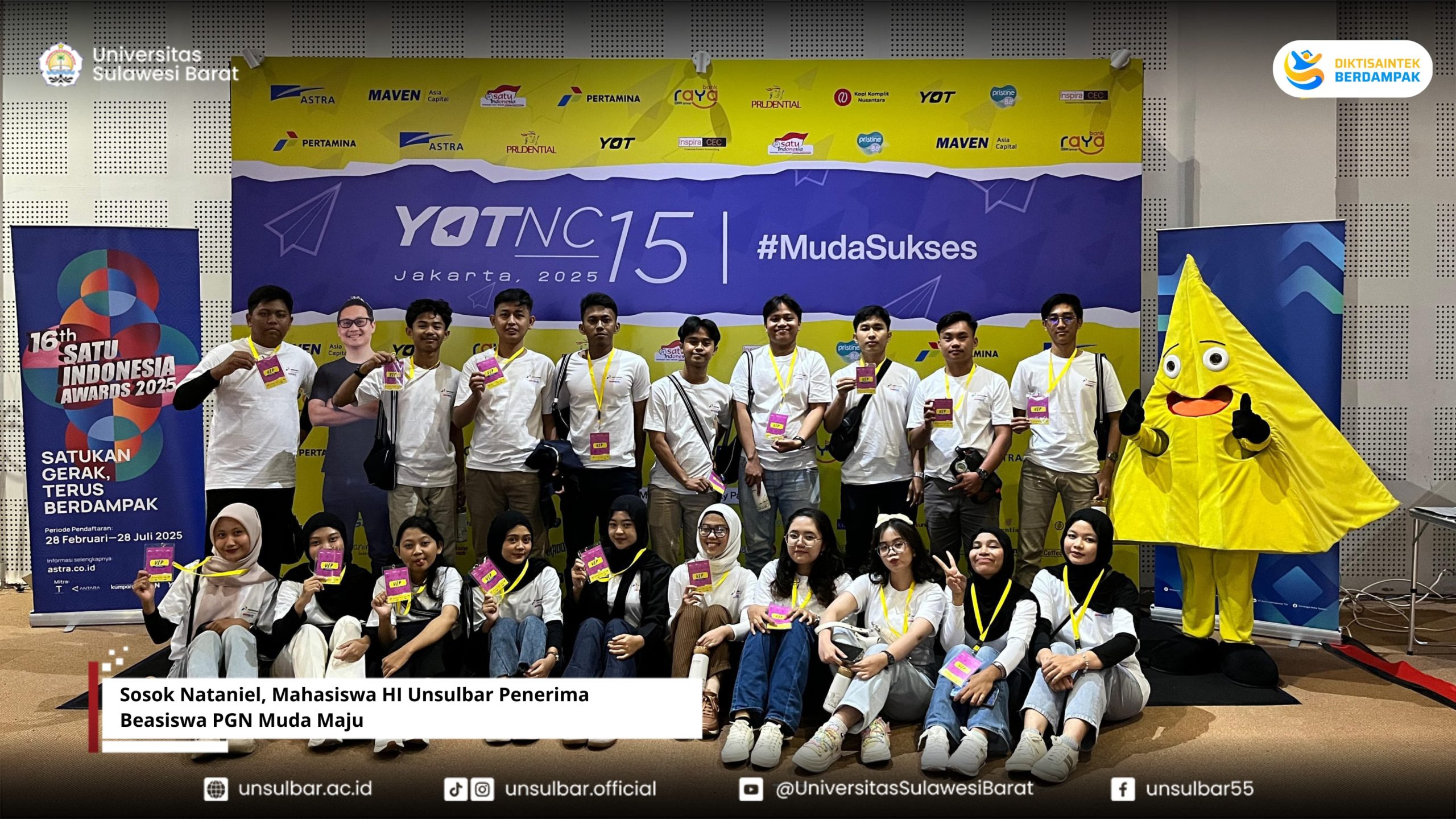 Universitas Sulawesi Barat – Prestasi Unsulbar datang dari Mahasiswa Program Studi (Prodi) Hubungan Internasional (HI) angkatan 2021, Nataniel berhasil meraih beasiswa Pertamina Gas Negara (PGN) Muda Maju, yang diberikan secara simbolis Pihak PGN di balai Kartini, Jakarta 19 Juli 2025