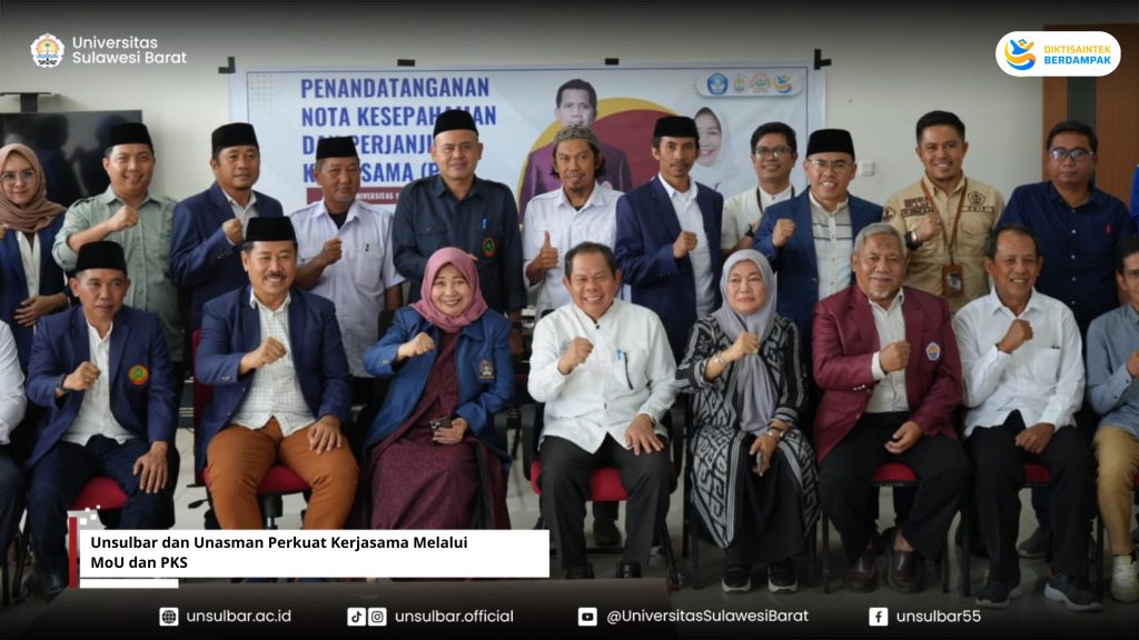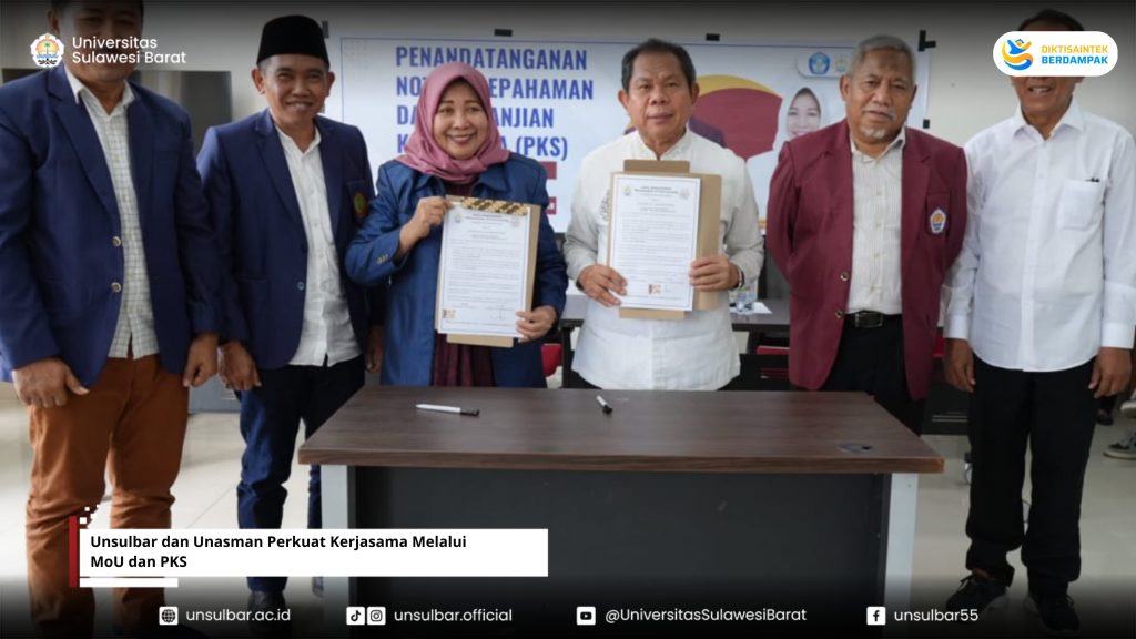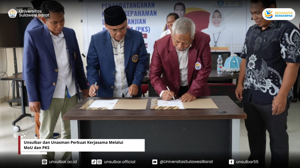 Universitas Sulawesi Barat, Majene – Unsulbar kembali menegaskan komitmennya dalam memperkuat kerjasama dalam mendukung program Tri Dharma Perguruan Tinggi melalui kegiatan penandatanganan Nota kesepahaman Memorandum of Understanding (MoU) dengan Universitas Al-Asy’ariah Mandar (Unasman)